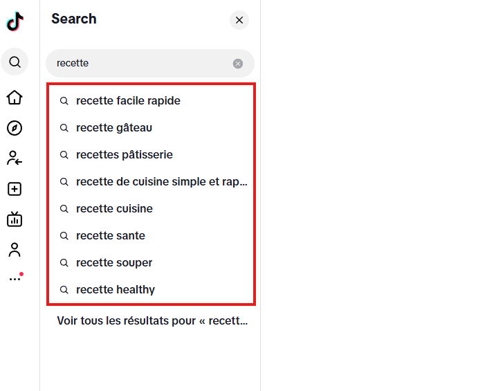 - Ouvre TikTok et tape un mot-clé de base dans la barre de recherche (ex : “recette healthy”).