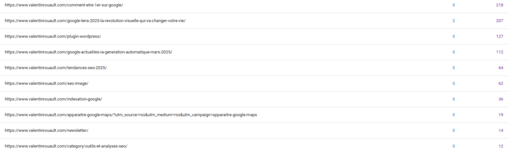 5. Détecter les pages avec peu d’impression et zéro clics. 👇